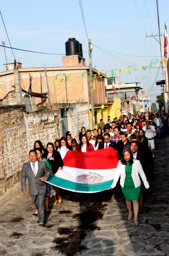 Suárez Juárez camino den las principales calles del municipio en compañía de regidores y directores del municipio, cargando el lábaro patrio además de escuelas que desfilaron para recordar lo sucedió hace 209 años cuando la guerra de independencia inicio.
