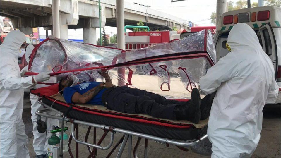 Los elementos de protección civil se preparan para el traslado de probables pacientes graves de COVID-19.