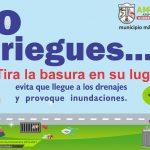 Externó que hoy mismo se puso en marcha la campaña “No la riegues… tira la basura en su lugar”, que pretende concientizar a la ciudadanía de no tirar la basura en la calle, porque al acumularse en los drenajes provoca taponeamientos, encharcamientos e inundaciones.