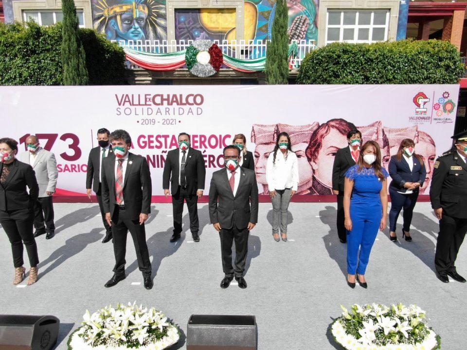 Valle de Chalco Solidaridad a 13 de septiembre de 2020. El Presidente Municipal de Valle Chalco, Armando García Méndez, encabezó la ceremonia solemne para conmemorar el CLXXIII Aniversario de la Gesta Heroica de los Niños Héroes.