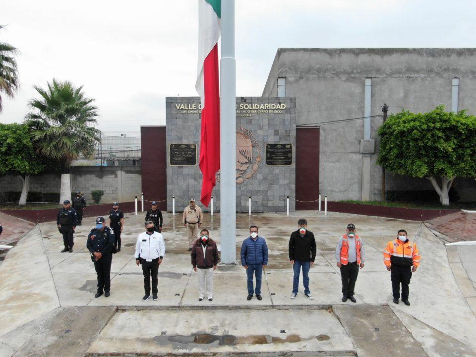 Valle de Chalco a 19 de septiembre de 2020. El gobierno de Valle de Chalco Solidaridad que dirige Armando García Méndez, izo la Bandera a media asta en señal de duelo y guardó un minuto de silencio en memoria de las víctimas de los sismos del 19 de septiembre de 1985 y 2017.