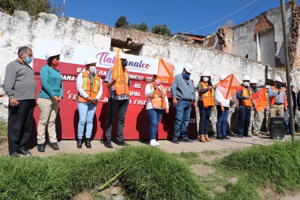 Tlalmanalco, Méx. 28 octubre del 2020. El gobierno municipal de Tlalmanalco encabezado por Ana Gabriela Velázquez Quintero dieron el banderazo de inicio de obra a los trabajos de construcción de guarniciones de banquetas en la avenida 16 de septiembre en la delegación de San Rafael.