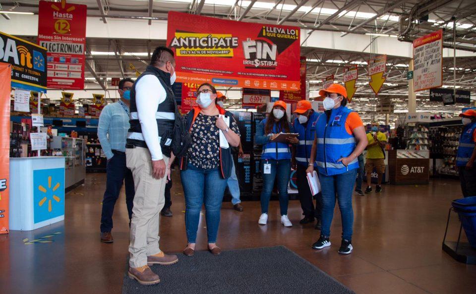 Chalco, Méx. 12 Noviembre del 2020. El gobierno municipal de Chalco a través de la Coordinación de Protección Civil inició con un operativo permanente para verificar la aplicación de las medidas sanitarias en las tiendas departamentales, supermercados y comercios locales que se unieron al programa nacional Buen Fin 2020, que estará en vigencia hasta el 20 de noviembre, esto con la finalidad de evitar la propagación del virus SARS-COV2 y en atención a las medidas de prevención emitidas por las autoridades sanitarias del Gobierno de México y del Gobierno Estatal, que corresponden al color naranja del semáforo epidemiológico.