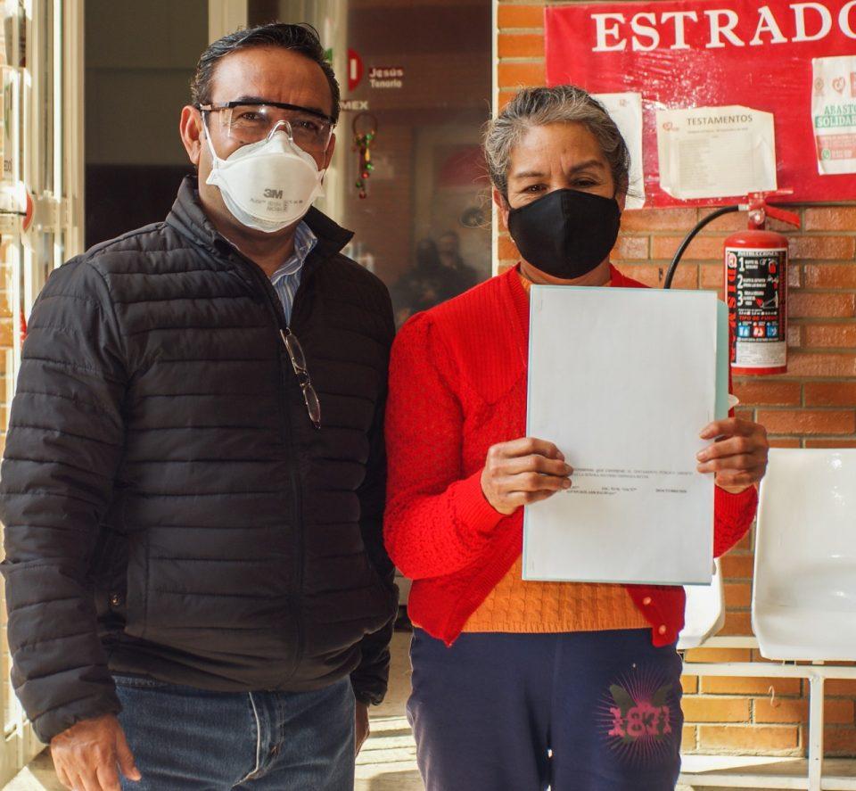 Directores, regidores y García Méndez entregaron de manera simbólica 30 testamentos a los beneficiados que son: Pablo Jiménez Hernández, Alejandro Juárez Torres, Venancio Alanís, Hipólito Barrón Medrano, Moisés García Carranza, Bulmaro Sánchez Delgado, Crisanta Albarrán Pérez, Faustino Hernández Colín, Placido Antonio García, Epifanía Hernández Chávez, Fermín Del Ángel Hernández, Amalia Sánchez Martínez, Adán Noé contreras Ruiz, Benita Galicia Galicia, Flavio Fernández Esteban, Marciano Zamorano, Apolinar Ojeda Lara, Rosario Cruz Varona, Jorge Jiménez Olmedo, María del Carmen Pérez Arellano, Alma Rosa Quiroz Lozada, Antonia Hernández Burgos, Efraín Salinas Escutia, Javier Merino Pérez, Rosalía García Contreras, Atenógenes García López, Luciano Velasco Reyes, Aurelia Pérez Conde, Juana Camarillo Gómez, Jorge Alba Arriaga, Cristina Santana González, Dulcinea Torres Ramírez, Enrique Galindo Olivas, Socorro Espinoza Reyes, Casimiro Rubio Rubio, y Apolonia Barrera Santiagués.