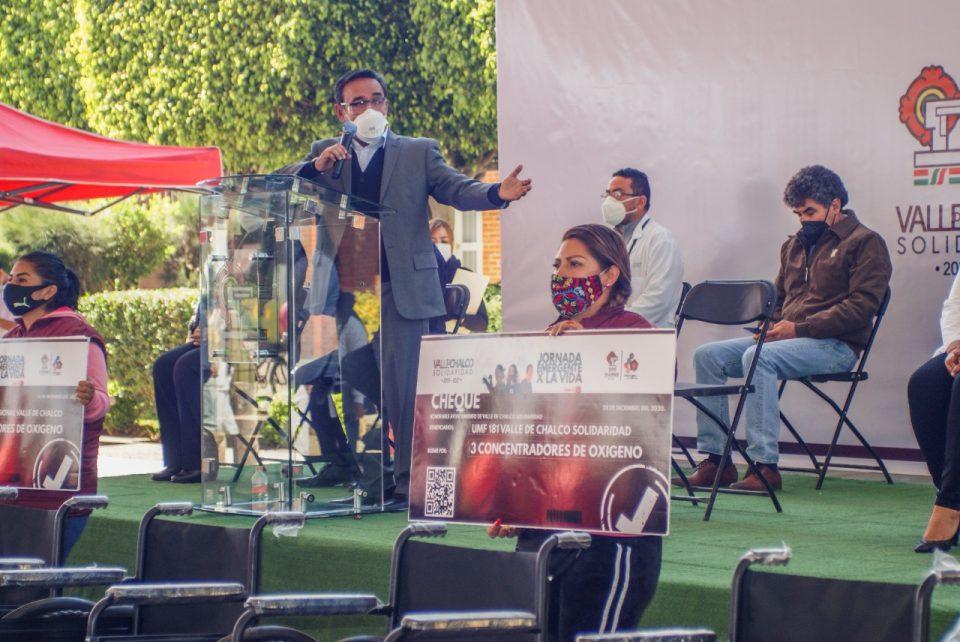 Otra acción, consistió en la entrega de equipo médico al Hospital General, Dr. Fernando Quiroz Gutiérrez; al Hospital Regional del Instituto de Seguridad Social del Estado de México y Municipios en Valle de Chalco, y a la Unidad de Medicina Familiar 181 del Instituto Mexicano del Seguro Social.