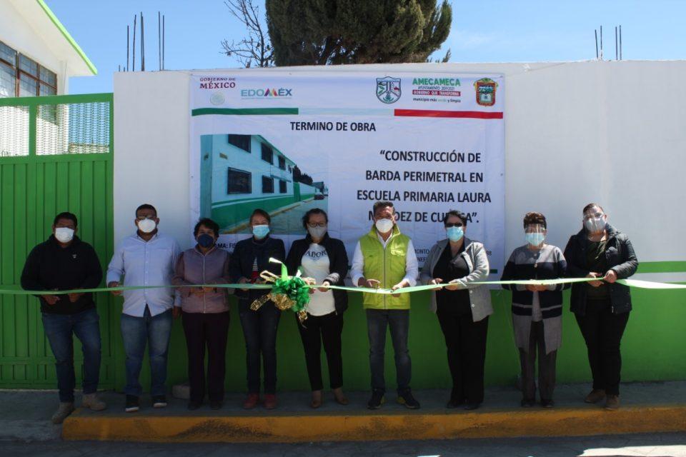 Al entregar la barda perimetral de la Primaria “Laura Méndez de Cuenca”, el Presidente Municipal recordó la preocupación que los padres de familia tenían por el daño que el sismo de 2017 provocó en la barda frontal de la institución, “ahora esta obra dará seguridad a los cientos de niños que toman clases en esta emblemática escuela, también a los padres de familia y los docentes”.