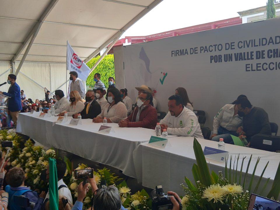 Este pacto de civilidad fue firmado tras la muerte de una líder social integrada al partido Verde ecologista, » les pido un minuto de aplausos para despedir a Balbina Tapia» dijo Javier Espinoza Herrera candidato del PVEM quien solicitó la firma ante el Instituto Electoral del Estado de México (IEEM).