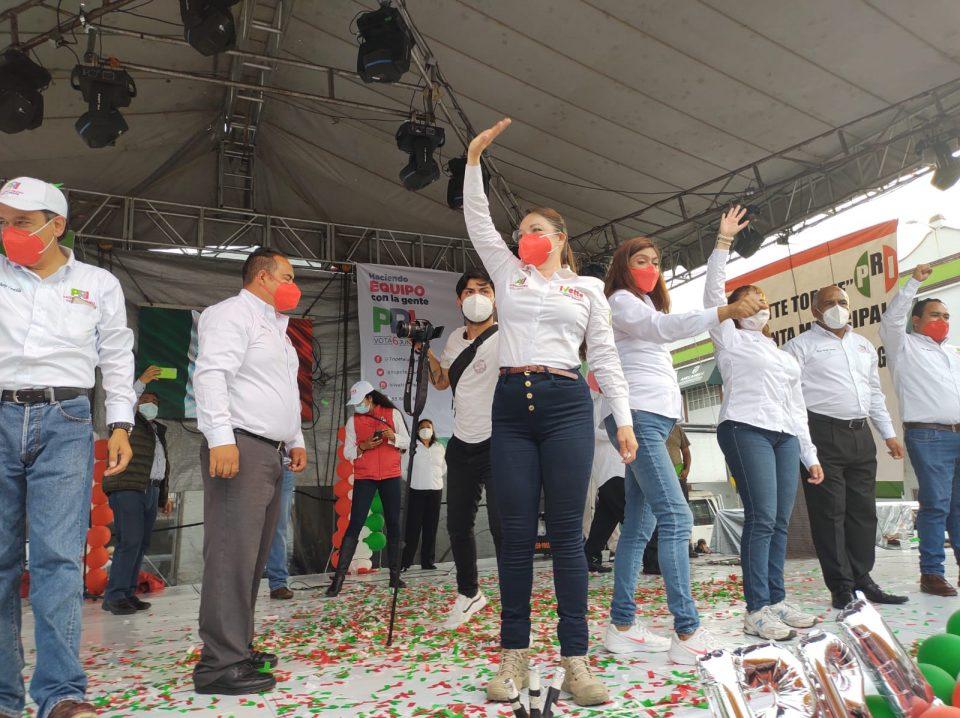 La candidata del tricolor presento a los integrantes de su planilla que son hombres y mujeres de las delegaciones del municipio que afirmó trabajar a favor de todos para lograr tener un mejor municipio.