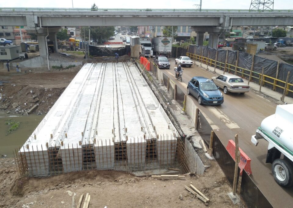La primera de ellas es la deconstrucción y reconstrucción del carril que va de avenida Adolfo López Mateos (R1) a vía Morelos, punto en el que se colocaron las cinco trabes.