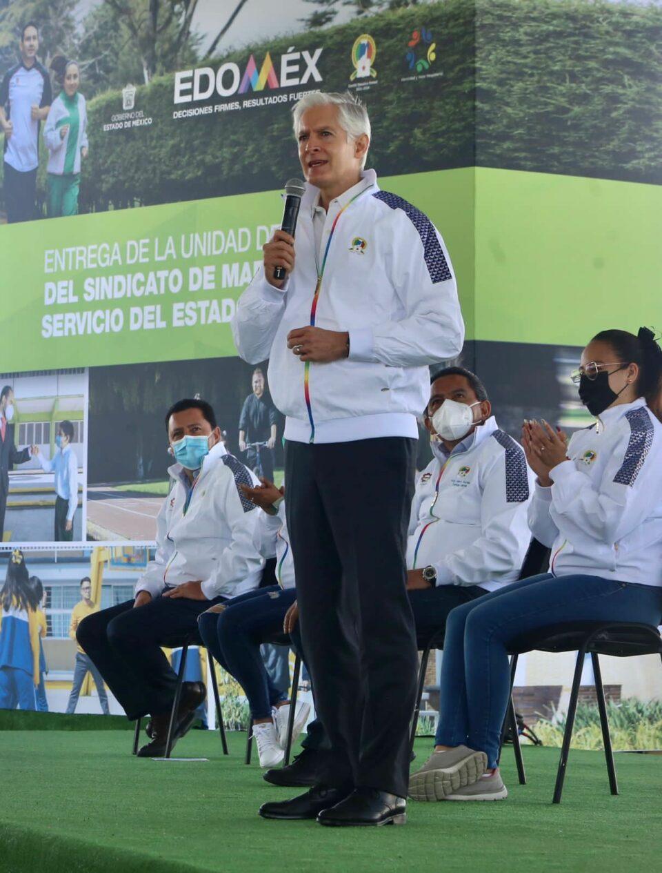 “Todo lo que hagamos para fortalecer a quienes hacen posible esta educación es en beneficio de los niños, de los jóvenes y de las familias mexiquenses, por eso le reitero el compromiso del Gobierno del Estado de seguir impulsando, de seguir apoyando infraestructura como ésta, que además de propiciar el deporte, también nos permita retomar las competencias del magisterio, los eventos culturales y deportivos del SMSEM”, subrayó.