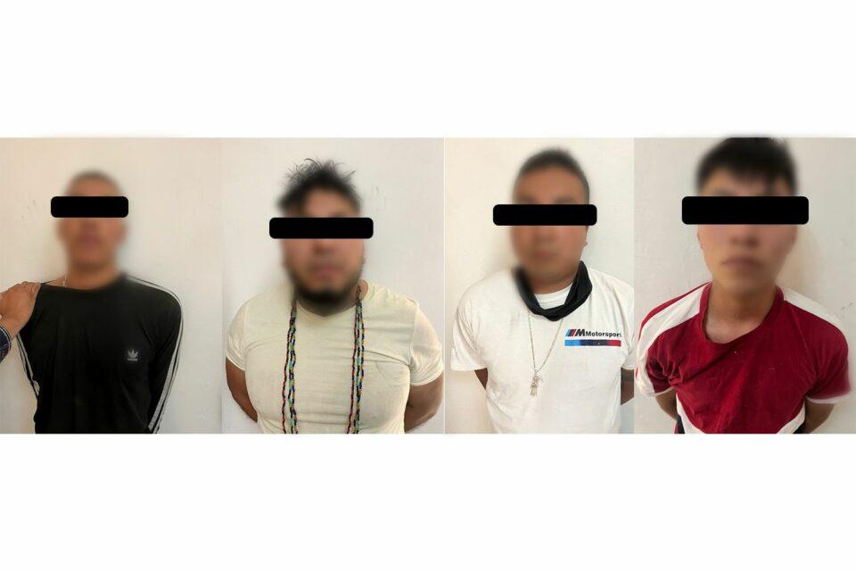 La Paz, Méx. 19 abril del 2022. Elementos de la Dirección de Seguridad Pública municipal de La Paz, Policía Estatal y de la Fiscalía General de Justicia del Estado de México (FGJEM) logran la detención de 4 sujetos que se presume habían cometido un robo en la tienda departamental Coppel, ubicada en la colonia Ampliación de los Reyes.