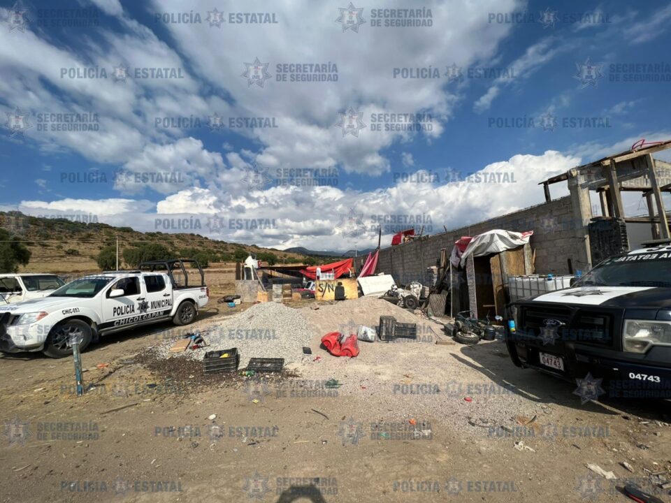 Enseguida las fuerzas del orden implementaron un operativo de búsqueda, el cual culminó sobre el camino que lleva al poblado de Los Reyes Tlamimilolpan, donde identificaron un predio en el que al parecer se almacenó el automóvil; desde el exterior, observaron a un sujeto, traspasando diversas autopartes hacia una camioneta de la marca GMC Pick Up, modelo 1995, color negro.