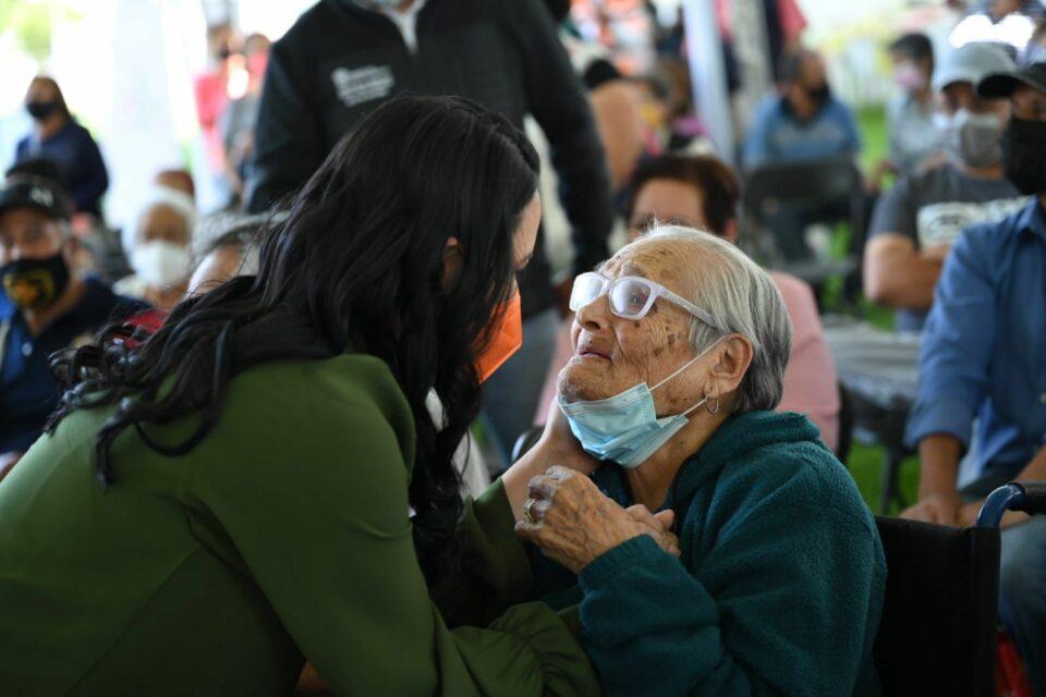 Alejandra Del Moral entregó sillas de ruedas, andaderas, bastones y muleta a adultos mayores, así como más de mil canastas alimenticias, a lo que los beneficiarios le agradecieron los apoyos recibidos.