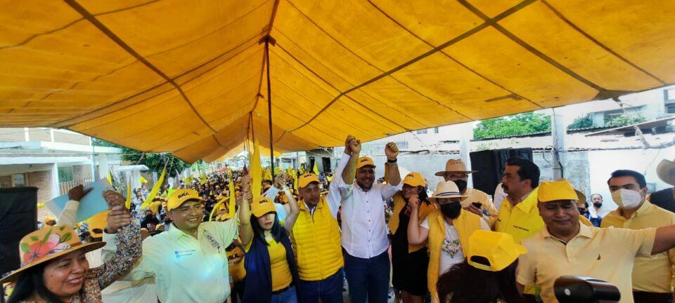 Luego de encabezar una mega marcha con más de tres mil personas de la cabecera municipal y de las delegaciones, que culminó con un mitin multitudinario frente a la casa de campaña, acompañado del dirigente estatal del PRD, Agustín Barrera Soriano y el secretario general Javier Escalona Rivera, así como diputadas y diputados locales y federales.