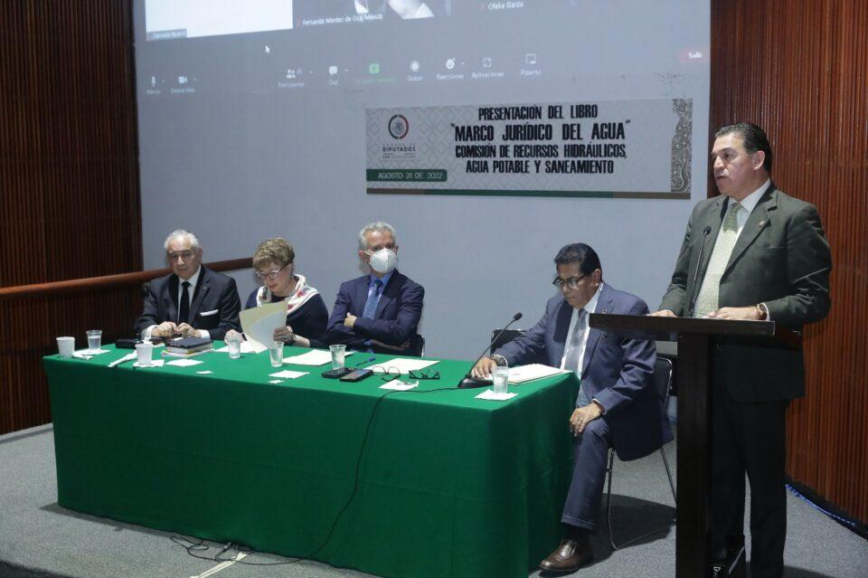 Ciudad de México. 1 septiembre del 2022. La Comisión de Recursos Hidráulicos, Agua Potable y Saneamiento, presidida por el diputado Rubén Gregorio Muñoz Álvarez (Morena), presentó el libro “Marco Jurídico del Agua. Hacia una nueva Ley General de Aguas”.