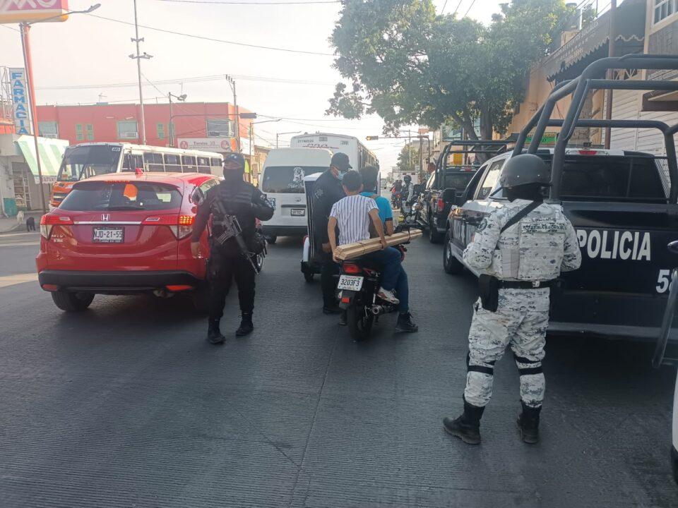 La policía va realizando recorridos así como filtros de inspección para motociclistas y vehículos y detectar a personas con alguna arma o cosas que no deben y se les informó y en su caso se les traslada a las sedes para su amonestación o puesta a disposición.
