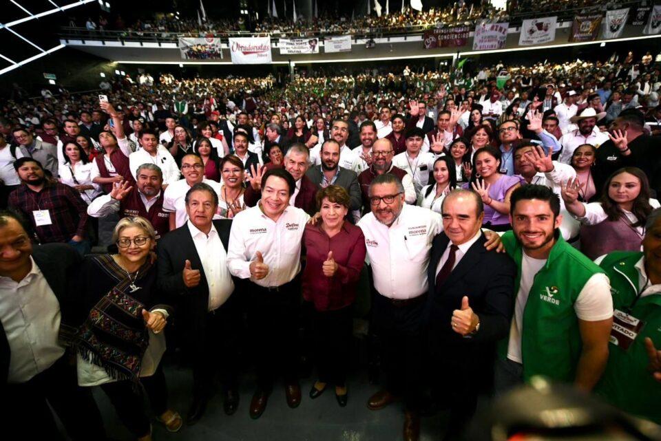 Toluca, Méx. Delfina Gomez Álvarez candidata de la alianza común Morena -PT-PVEM para la gubernatura del Estado de México presentó el Programa para el Bienestar Mexiquense en los municipios de Toluca y Naucalpan en el que señala cuáles serán los ejes de su gobierno.