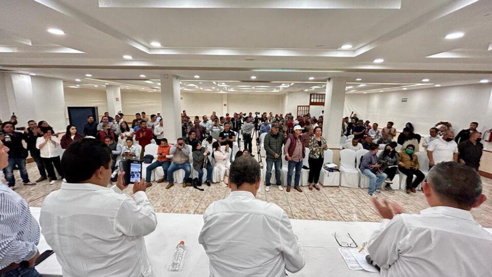Toluca, Méx., 16 de abril de 2023.- El Delegado Especial para el proceso electoral de Morena en el Estado de México, Higinio Martínez Miranda, recibió al alcalde perredista de Tlatlaya, Crisóforo Hernández Mena, exalcaldes, regidores, ex regidores, y liderazgos de la región sur del Estado de México que se suman al proyecto de la maestra Delfina Gómez y anuncian que serán una Fuerza Única en esta zona de la entidad.