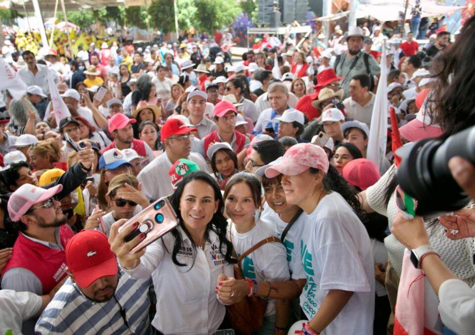 *Recorrimos los 125 municipios de la entidad y tenemos tendencia ganadora, dijo la abanderada del PRI, PAN, PRD Nueva Alianza.