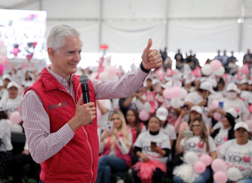 En el Deportivo Santa Cecilia, en Tlalnepantla de Baz, el mandatario mexiquense dio a conocer que durante su administración más de 700 mil mujeres contaron con el respaldo del Salario rosa, el cual tuvo como objetivo impulsar el trabajo, el emprendimiento, la cultura, educación y el campo.