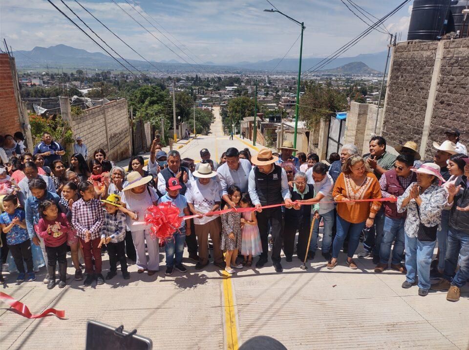 Chalco, Estado de México, 10 de agosto de 2023.- El Presidente Municipal, Miguel Gutiérrez visitó el poblado de San Martín Cuautlalpan, para hacer entrega de la pavimentación de la calle Niños Héroes, en La Loma y el empastado de las canchas del CETIS 96, obras con una inversión superior a los 10 millones de pesos, en beneficio de vecinas, vecinos y la comunidad estudiantil y deportiva.