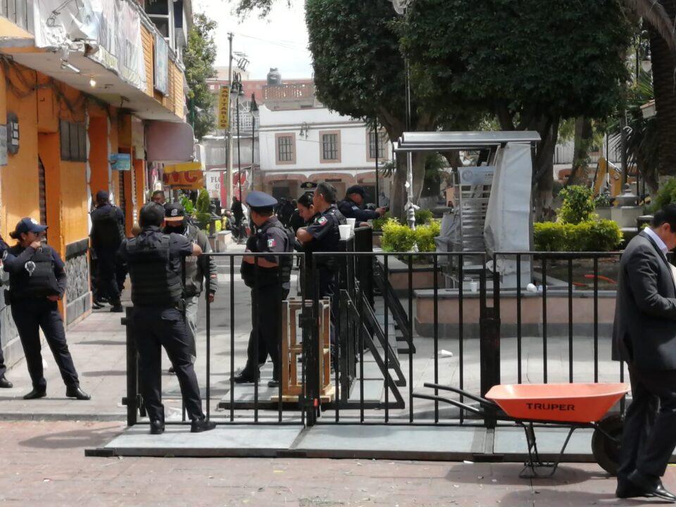 Desde la madrugada, la alcaldesa Xóchitl Flores Jiménez ordenó un cerco policiaco en los alrededores del primer cuadro del municipio, ya que el mercado Zaragoza se encuentra a un costado del palacio municipal, para evitar que los comerciantes pudieran sacar sus pertenencias de valor y sus diferentes mercancías.