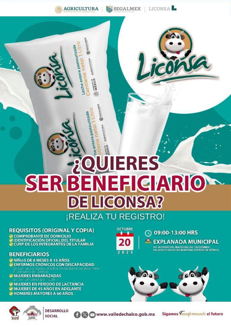 • ¡Fácil y rápido, afíliate al programa de abasto social de leche de LICONSA!; 20 de octubre en la explanada municipal de las 9 a las 13 horas.