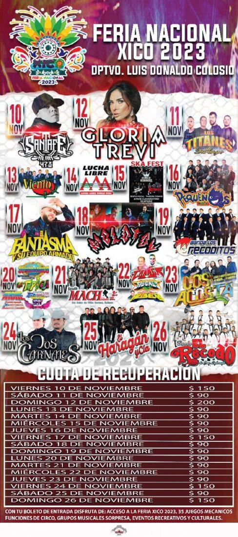 Valle de Chalco Solidaridad a 4 de noviembre de 2023. Artistas de prestigio con boletos de entrada muy por debajo de su costo en foros musicales, serán parte de la cartelera que habrá de presentarse en la FERIA NACIONAL XICO 2023, anunció el Presidente Municipal Armando García Méndez en charla con los medios de comunicación.
