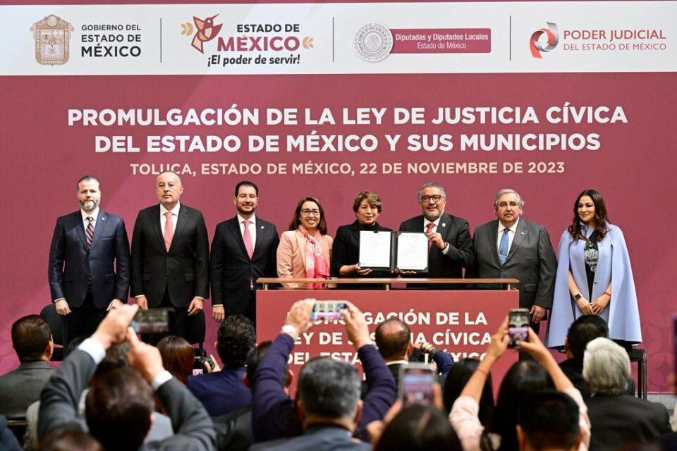 “La Ley de Justicia Cívica es una gran noticia para el Estado de México, es un acierto de nuestro Poder Legislativo y un acierto de nuestra Gobernadora, que hoy la promulga y la hace pública. Significa que todos nosotros tenemos que estar comprometidos en que este proyecto funcione, eso se lo merece el Estado de México”, señaló.