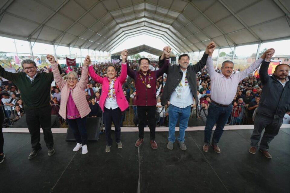 El líder del partido guinda recordó que, hace unos meses, otra mujer ilusionó al movimiento de transformación con su victoria en el Estado de México: la hoy gobernadora Delfina Gómez. “[Delfina] nos hizo emocionarnos mucho hace unos cuantos meses aquí en el Estado de México y, contra todo pronóstico, ganamos. Sí se pudo”.