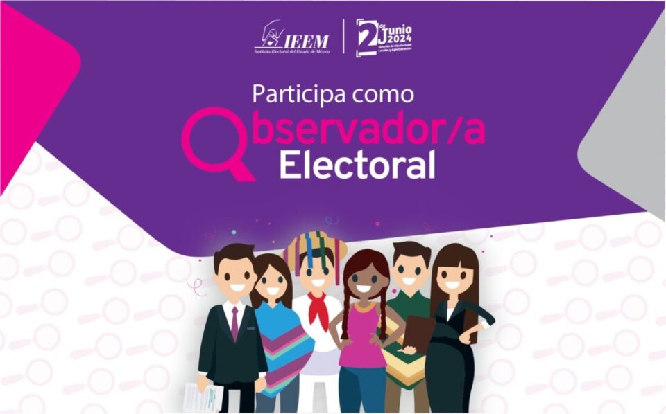 La observación electoral brinda un elemento más a la legitimidad, transparencia y confianza a los procesos electorales. Además, contribuye al fortalecimiento de la democracia y de la participación libre y voluntaria de la ciudadanía. Para la Elección de Diputaciones Locales y Ayuntamientos 2024, el pasado 5 de enero, el Instituto Electoral del Estado de México (IEEM) emitió la convocatoria dirigida a las personas interesadas en participar como observadores electorales, misma que se mantendrá abierta hasta el 7 de mayo de 2024.