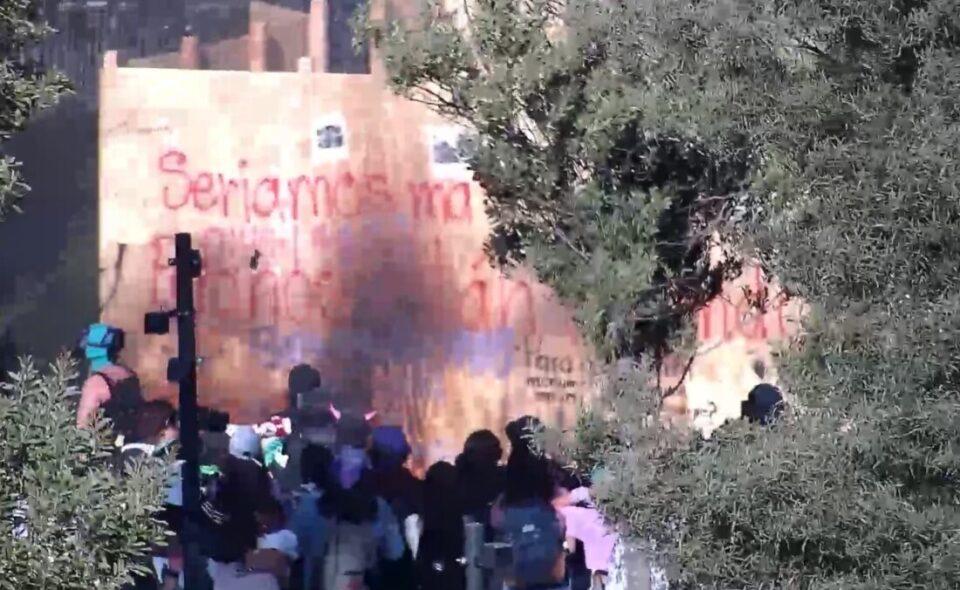En las movilizaciones del día de hoy, con motivo del Día Internacional de la Mujer, en la capital mexiquense se registraron dos percances en los que se hizo presente el uso de cohetes y dispositivos incendiarios por parte de las manifestantes.