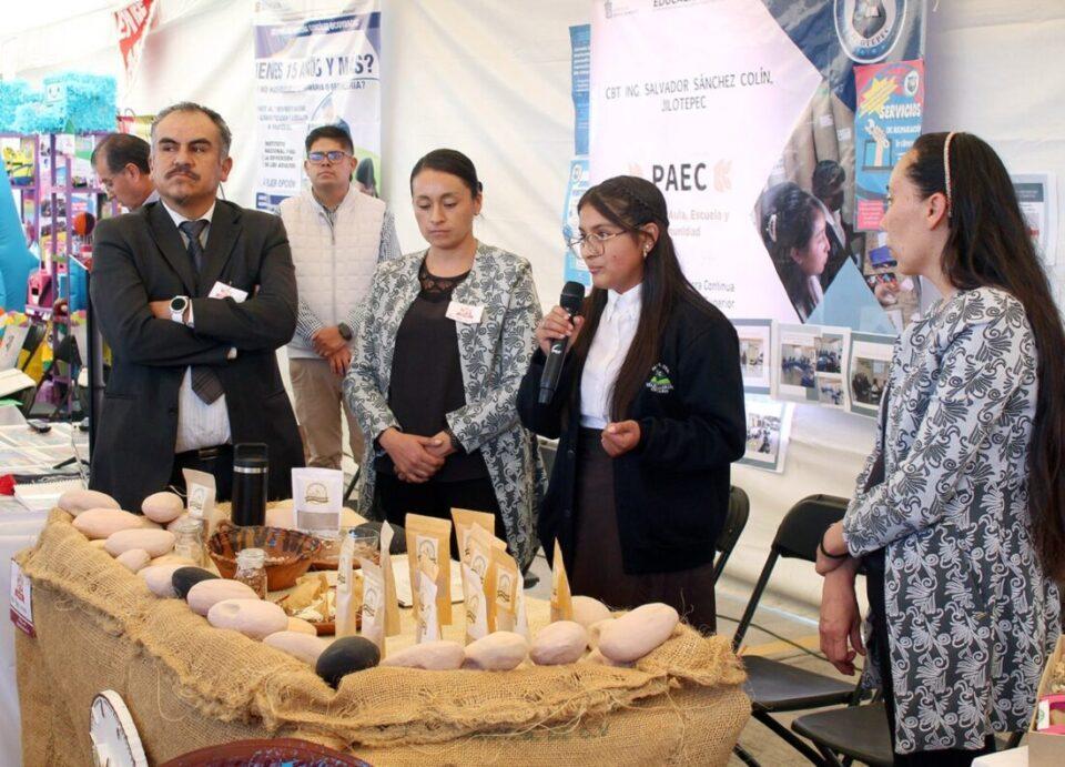 ZINACANTEPEC, Estado de México. – Estudiantes mexiquenses presentaron proyectos innovadores, resultado del aprendizaje colaborativo entre alumnado, docentes, padres de familia y empresarios, durante la primera Exposición de Proyectos Escolares Comunitarios (PEC) denominado “Expo PEC 2024”.