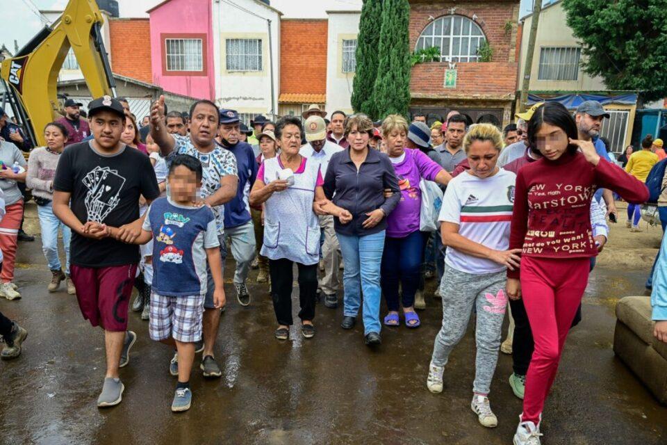 Recorre Gobernadora Delfina Gómez zonas afectadas por lluvias en oriente del Estado de México; supervisa atención a la población