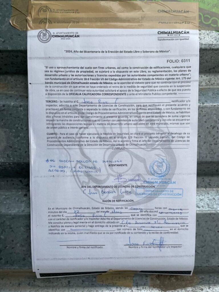 Chimalhuacán, Méx., 1 de agosto de 2024.- Padres de familia, maestros y alumnos de la Escuela Secundaria “Sor Juana Inés de la Cruz”, ubicada en la colonia Acuitlapilco, denuncian a las autoridades municipales, encabezadas por la presidenta municipal Xóchitl Flores Jiménez. Estas autoridades autorizaron la construcción de una barda que obstruye la salida de emergencia de la escuela, poniendo en riesgo la seguridad de los estudiantes.