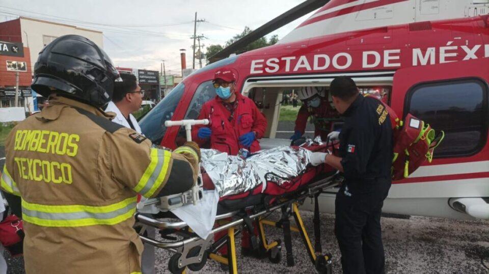 TEXCOCO, Estado de México.- Con el uso de dos ambulancias aéreas, la Unidad de Rescate Aéreo «Relámpagos» realizó el traslado interhospitalario de dos pacientes masculinos, de 14 y 33 años de edad, quienes sufrieron quemaduras por fuego directo, del Hospital General «Guadalupe Victoria», en Texcoco, a la Unidad Médica de Alta Especialidad (UMAE) Hospital de Traumatología y Ortopedia «Dr. Victorio de la Fuente Narváez», en la Ciudad de México.