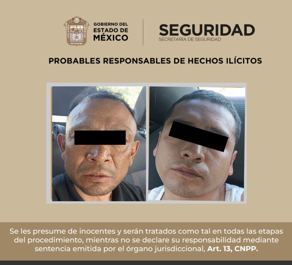 Derivado de trabajos de investigación, elementos de la Secretaría de Seguridad del Estado de México y personal de esta misma dependencia, adscritos a la Unidad de Inteligencia e Investigación Policial (UIIP), detuvieron a dos hombres probables implicados en el delito de tentativa de secuestro en agravio de una persona, por la que al parecer solicitarían un millón de pesos para su liberación.