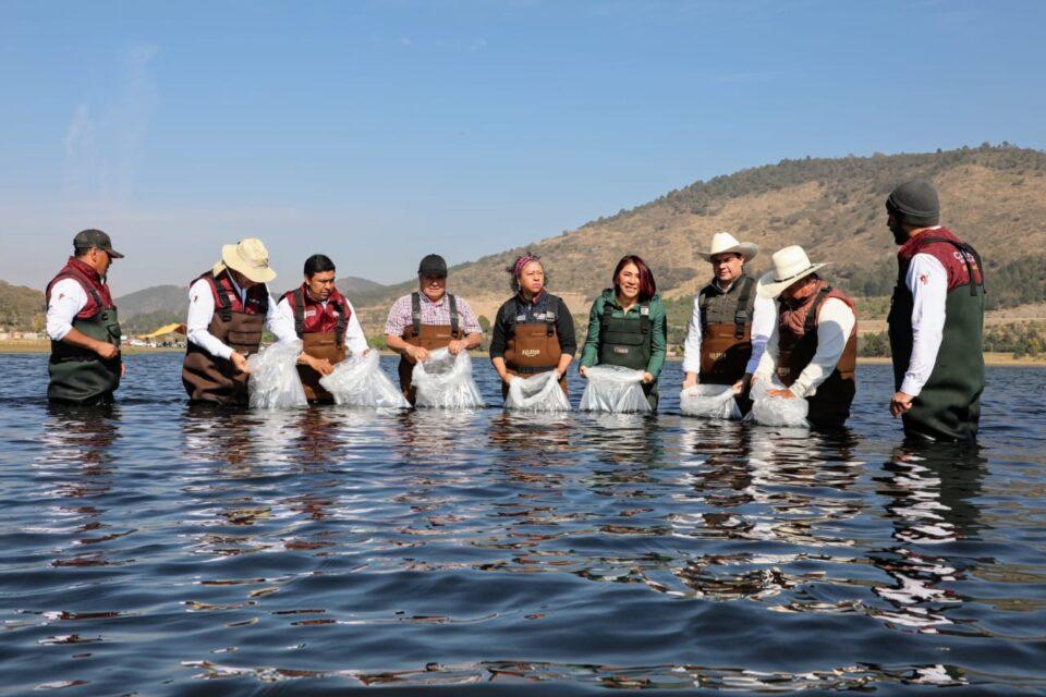 ACAMBAY, Estado de México. – A fin de incentivar la producción acuícola en el Estado de México y una alimentación sana entre la población, la Secretaría del Campo puso en marcha la entrega de 52 millones de alevines de trucha, carpa y rana toro a productores acuícola.