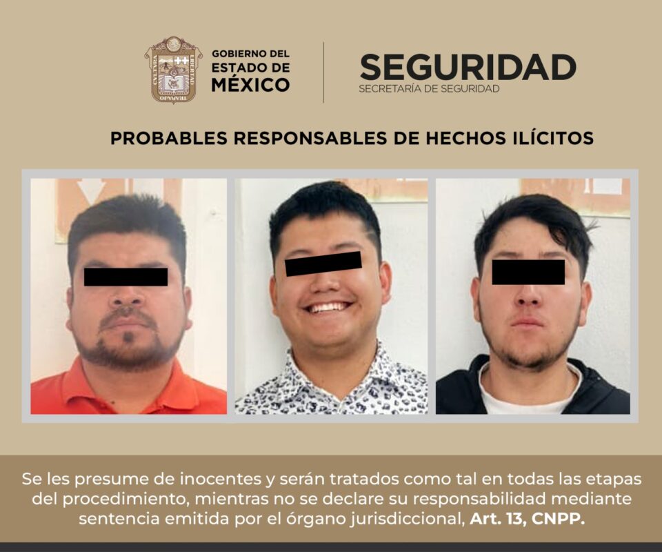 Por lo anterior, policías detuvieron a Óscar “N” de 34 años, Luis “N” de 23 años y Brian “N” de 20 años de edad, quienes después de conocer los derechos que la ley emana a su favor, fueron trasladados a la Agencia del Ministerio Público correspondiente, donde se determinará su situación legal.