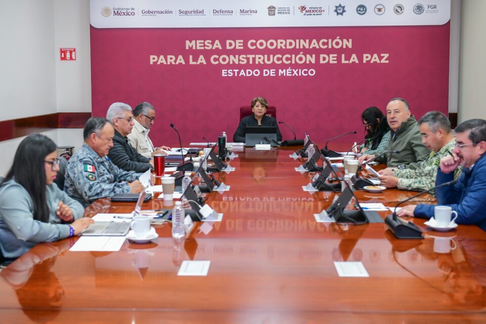 •La Gobernadora Delfina Gómez Álvarez preside la Mesa de Coordinación para la Construcción de la Paz, destaca este resultado como reflejo del trabajo coordinado con el Gobierno Federal y los municipios.