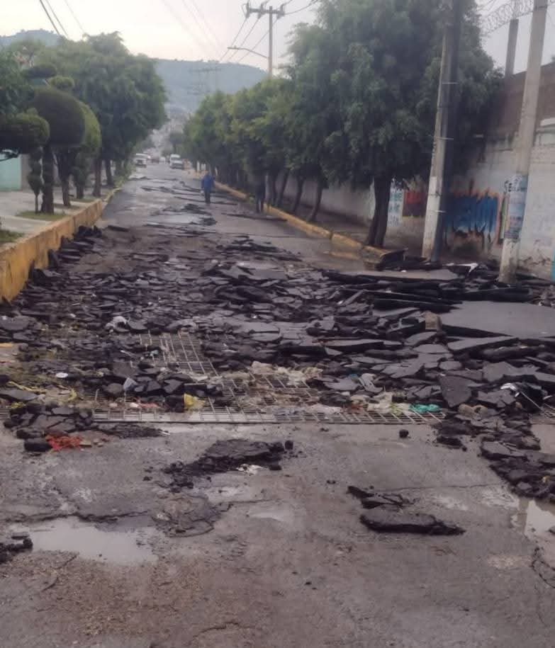 En zonas cerriles de Los Reyes La Paz y Chimalhuacán, las lluvias provocaron deslaves y fuertes corrientes de agua que arrastraron piedras, lodo, basura y todo tipo de desechos. Incluso, en algunas calles la fuerza del agua reventó banquetas y rompió el pavimento, evidenciando la mala calidad de muchas obras públicas recién inauguradas.