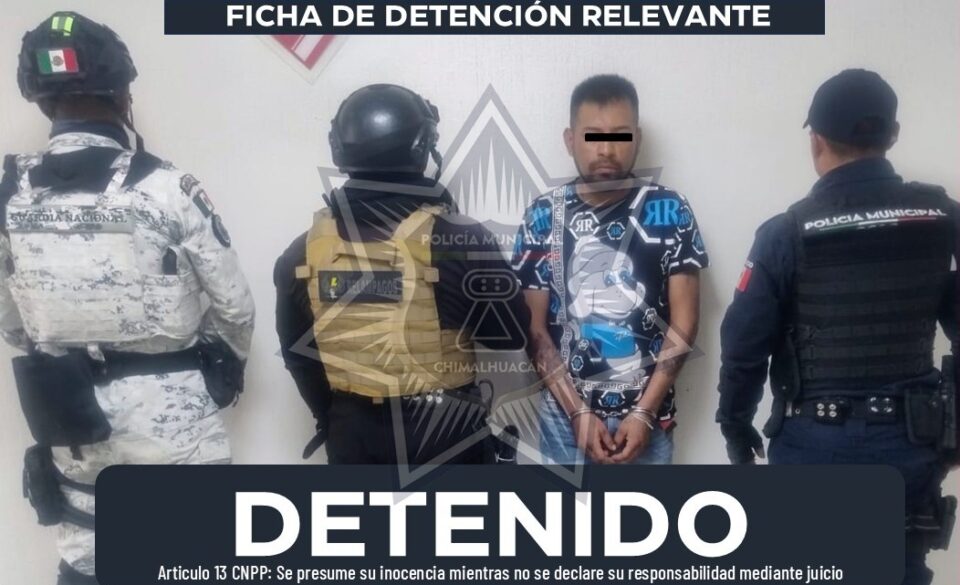 El detenido fue asegurado conforme a los protocolos legales, informándole en todo momento sobre sus derechos, y posteriormente fue puesto a disposición de la Fiscalía General de Justicia del Estado de México, quien determinará su situación jurídica.