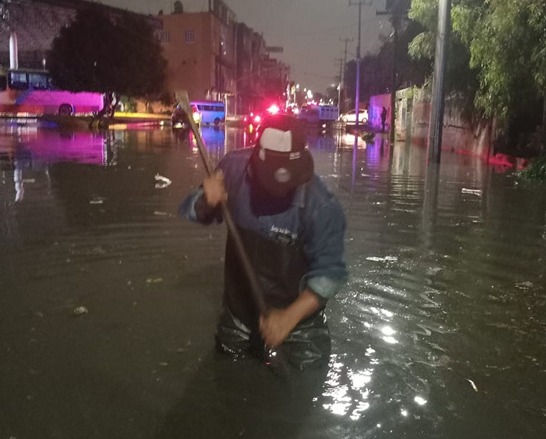 En paralelo, elementos del Cuerpo de Bomberos y Protección Civil trabajaron en el tramo comprendido entre The Home Depot y la estación del Metro Santa Martha, donde se presentó una fuerte acumulación de agua.