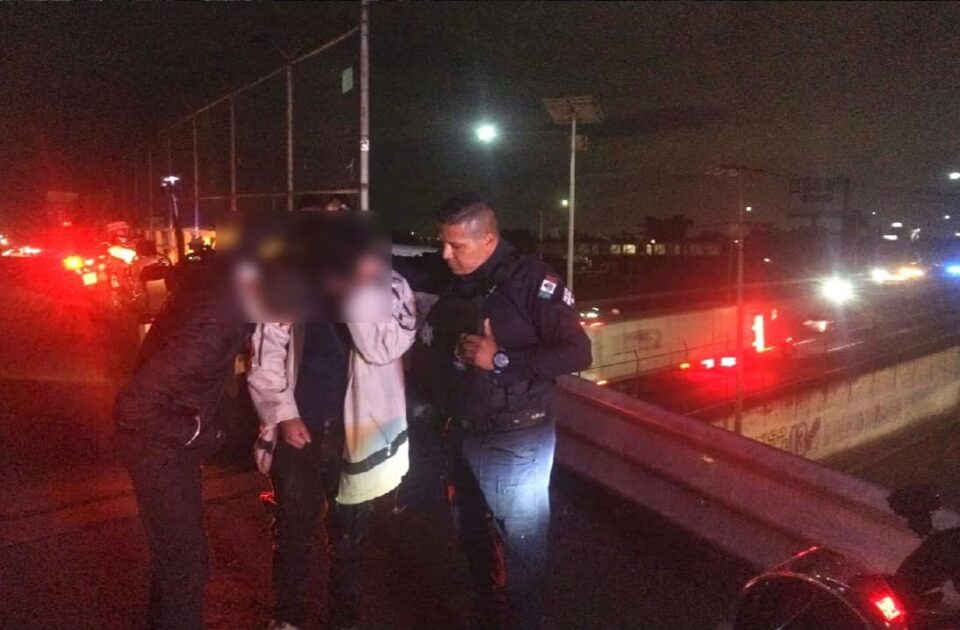 Ecatepec, Méx., a 20 de agosto de 2025. Elementos de la policía municipal evitaron que un joven de Tizayuca con crisis de ansiedad se lanzara desde un puente vehicular de avenida Revolución y le brindaron contención psicológica, para después localizar a sus familiares y entregarlo sano y salvo.