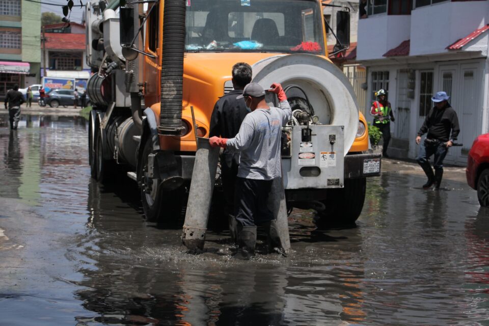 En la colonia Quinto Sol fueron al menos 15 casas donde ingresó el agua; ahí cuadrillas conformadas por varias direcciones realizan desazolve de coladeras y limpieza de calles