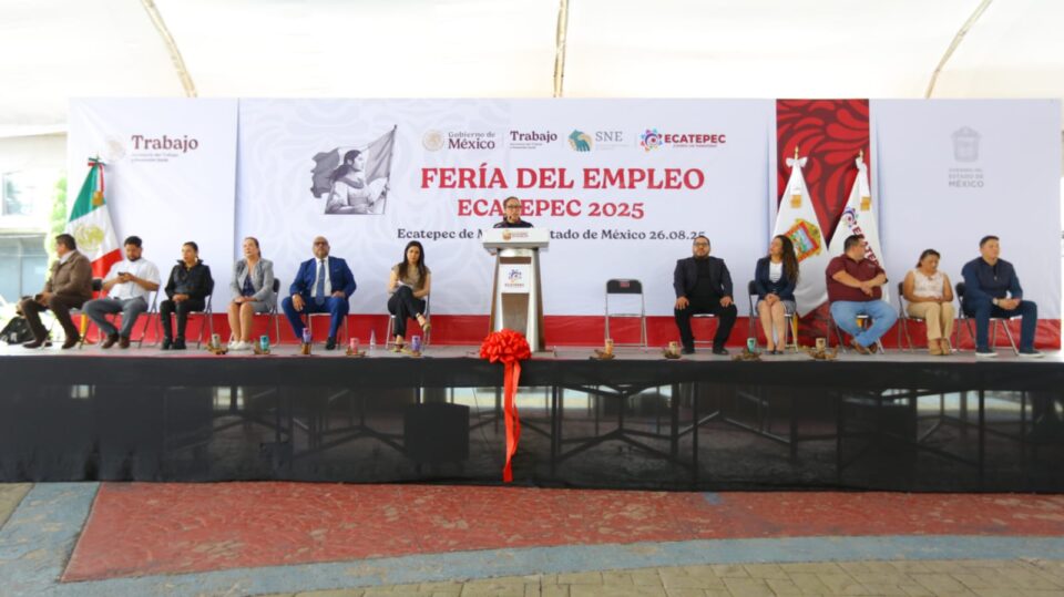 En la explanada municipal de Ecatepec, la alcaldesa afirmó que la Feria del Empleo “es un espacio pensado para abrir puertas, generar oportunidades y demostrar que en Ecatepec tenemos talento y que somos un pueblo trabajador que no se rinde; hoy nos acompañan más de 122 empresas que ponen a disposición más de mil 100 vacantes; se trata de empresas grandes, medianas y pequeñas que representan distintos sectores de la economía y que hoy tienden un puente con quienes buscan un empleo o una nueva posibilidad de crecimiento”.