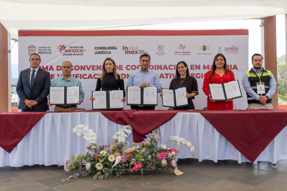 VALLE DE BRAVO, Estado de México.– El Gobierno del Estado de México firmó convenios de colaboración con los municipios de Valle de Bravo, San Simón de Guerrero, Zacazonapan y Villa Victoria en materia de verificación administrativa, con lo que ya son 50 los ayuntamientos que se suman a esta estrategia para consolidar un modelo económico basado en la transparencia y el cumplimiento de la normatividad.