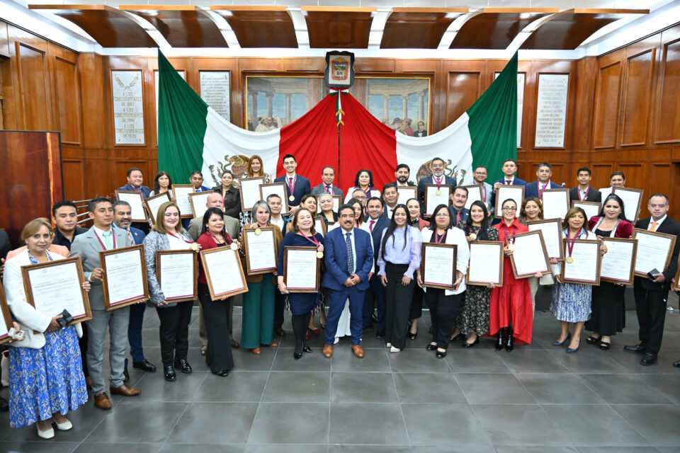 A través de la Junta de Coordinación Política, presidida por el legislador Francisco Vázquez, el Congreso mexiquense otorgó a 36 docentes el Pergamino y la Medalla al Reconocimiento Docente 2025.