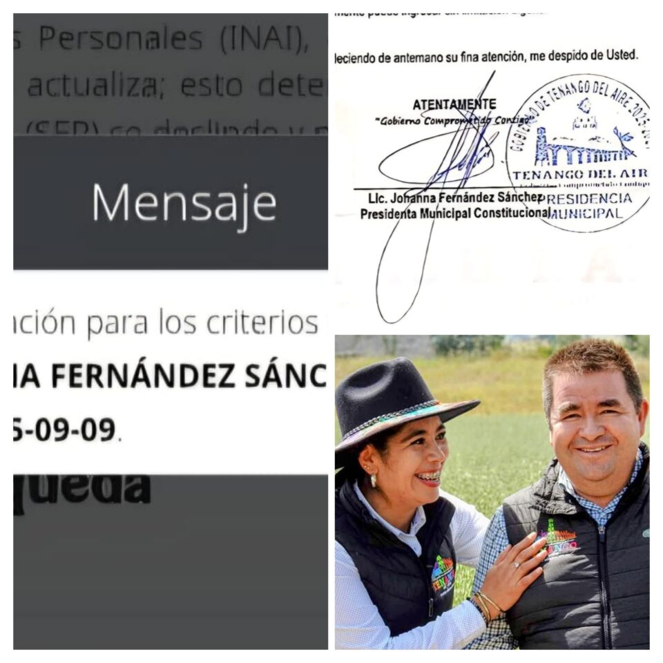 Méx.- 9 de septiembre de 2025. La presidenta municipal de Tenango del Aire en el Estado de México Johanna Fernández Sánchez firma documentos oficiales como licenciada sin serlo, de acuerdo a la página Registro Nacional de Profesionistas de la Secretaría de educación pública y que se encuentra en la página oficial del Gobierno de México.