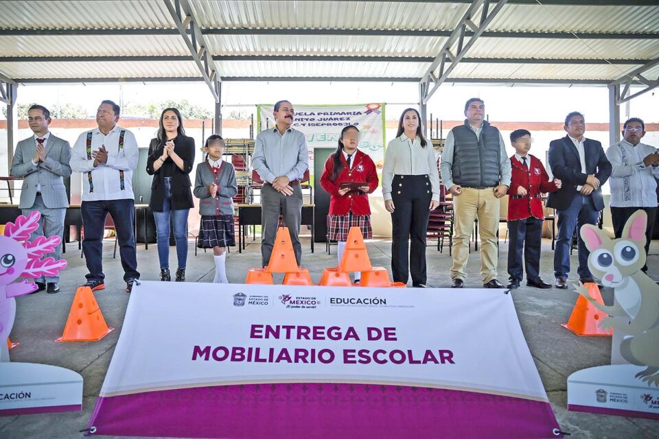 TOLUCA, Estado de México.– Un total de mil 498 estudiantes de nivel básico fueron beneficiados con la entrega de mobiliario escolar a 34 planteles de Almoloya de Alquisiras, como parte de la Estrategia Integral para el Bienestar de la Comunidad Escolar 2025–2026, impulsada por el Gobierno del Estado de México para garantizar espacios dignos, seguros y motivadores para el aprendizaje.